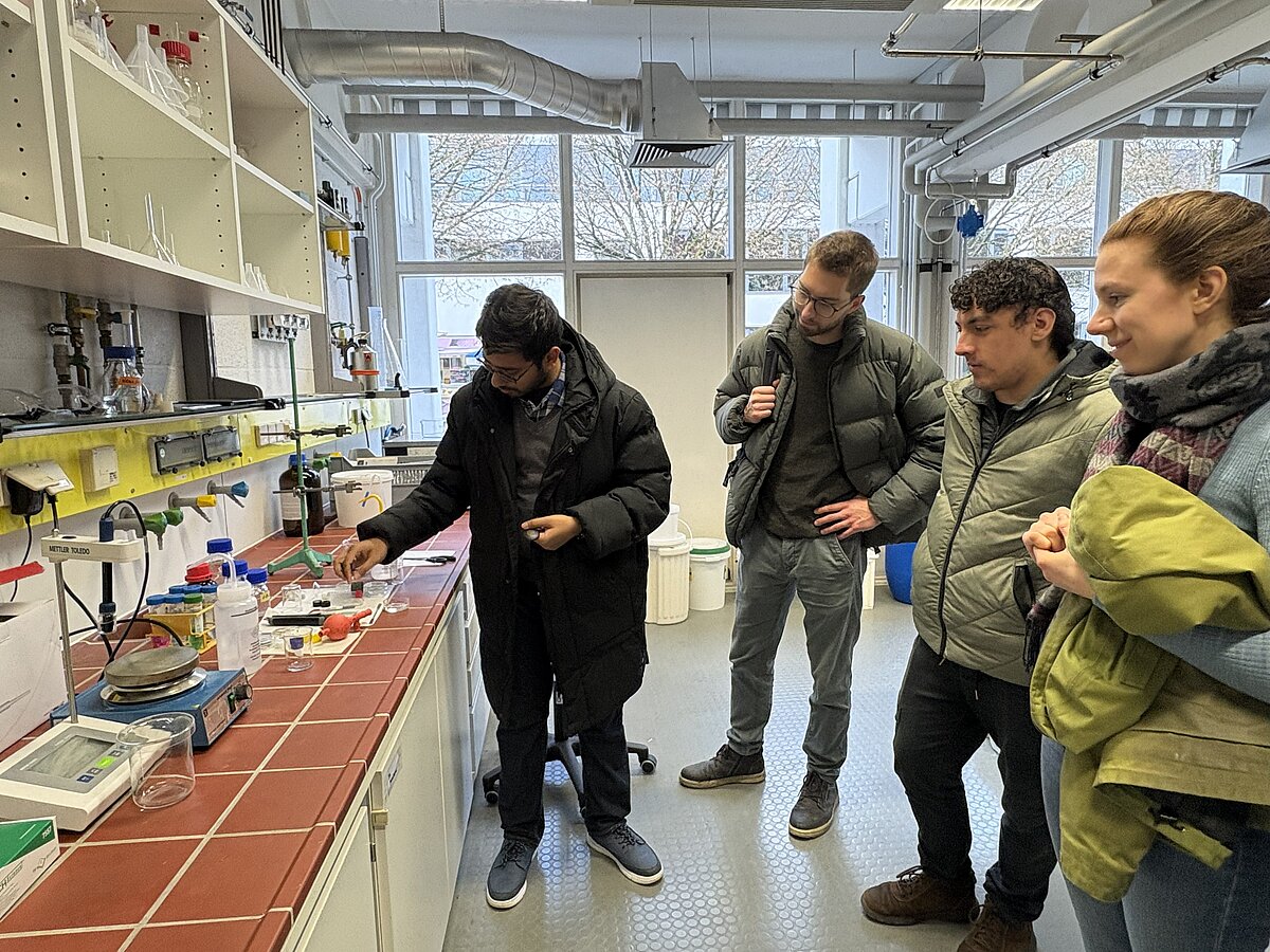 Nach einer kurzen Vorstellung beider Forschungsgruppen folgte ein gemeinsamer Rundgang durch die Labore und Arbeitsräume. Beide Arbeitsgruppen nahmen sich viel Zeit, ihre jeweiligen Forschungsthemen, eingesetzten Methoden und Geräte ausführlich vorzustellen. So erhielten wir nicht nur einen Einblick in laufende Projekte, sondern auch in experimentelle Aufbauten, Messverfahren und eingesetzte Materialien. Besonders spannend waren die praxisnahen Demonstrationen. Natürlich gab es auch reichlich Gelegenheit für Diskussionen, Fragen und den informellen Austausch zwischen den Teilnehmenden.